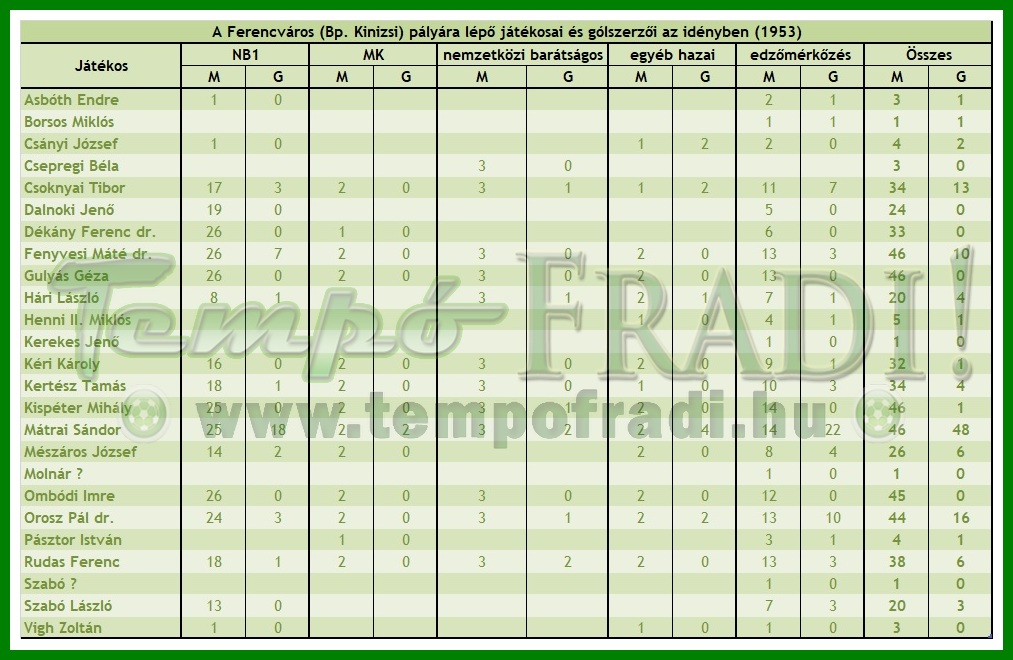 1953. 11. 22., Üllői út, Bp. Kinizsi – Szegedi Honvéd 4:0 (3:0), NB1