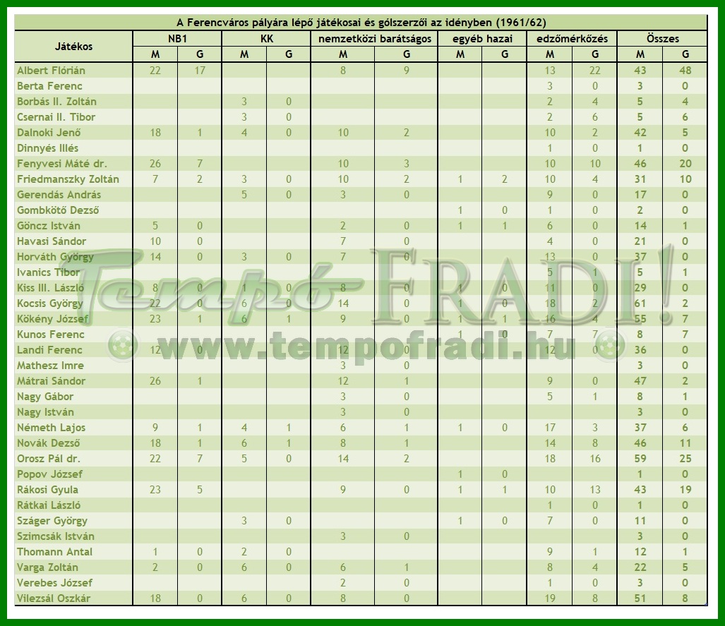 1961 — 1962-es NB. – Bajnok: a Bp. Vasas, II. Újpest, III. Ferencváros.