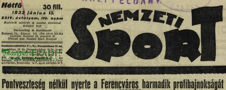 1932.VI.12. Ferencváros – Budai „11” 3:1 Közzétéve: 2009. február 1. vasárnap | Szerző: K@rcsi Pontveszteség nélkül nyerte a Ferencváros harmadik profibajnokságát A budai csapat kitűnő játéka élvezetessé tette a játékot s ugyancsak megnehezítette a Ferencváros utolsó bajnoki győzelmét Egy kattintás ide a folytatáshoz.... →