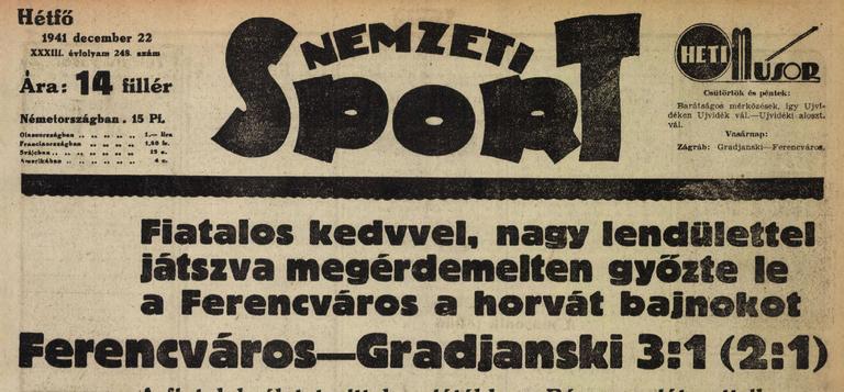 1941.XII.28. Gradjanski – Ferencváros 4:2 Közzétéve: 2009. február 10. kedd | Szerző: mjozef22 Egy kattintás ide a folytatáshoz.... →