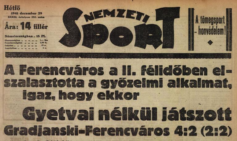 1941.XII.21. Ferencváros – Gradjanski 3:1 Közzétéve: 2009. február 10. kedd | Szerző: K@rcsi Egy kattintás ide a folytatáshoz.... →