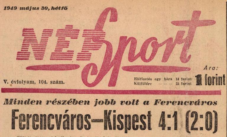 1949.V.29. Ferencváros – Kispest 4:1 Közzétéve: 2009. február 18. szerda | Szerző: K@rcsi Minden részében jobb volt a Ferencváros Egy kattintás ide a folytatáshoz.... →