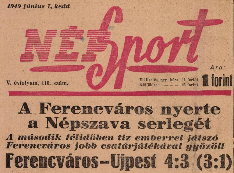 1949.VI.6. Népszava serleg-döntő, Ferencváros – Újpest 4:3 Közzétéve: 2009. február 18. szerda | Szerző: K@rcsi A Ferencváros nyerte a Népszava serleget A második félidőben tíz emberrel játszó Ferencváros jobb csatárjátékával győzött Egy kattintás ide a folytatáshoz.... →