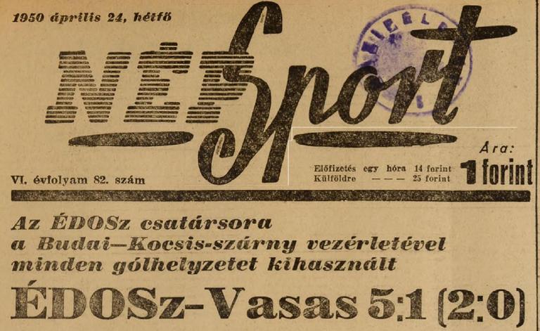 1950.IV.23. ÉDOSZ – Vasas 5:1 Közzétéve: 2009. február 19. csütörtök | Szerző: K@rcsi Egy kattintás ide a folytatáshoz.... →
