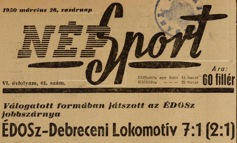 1950.III.25. ÉDOSZ – Debreceni Lokomotív 7:1