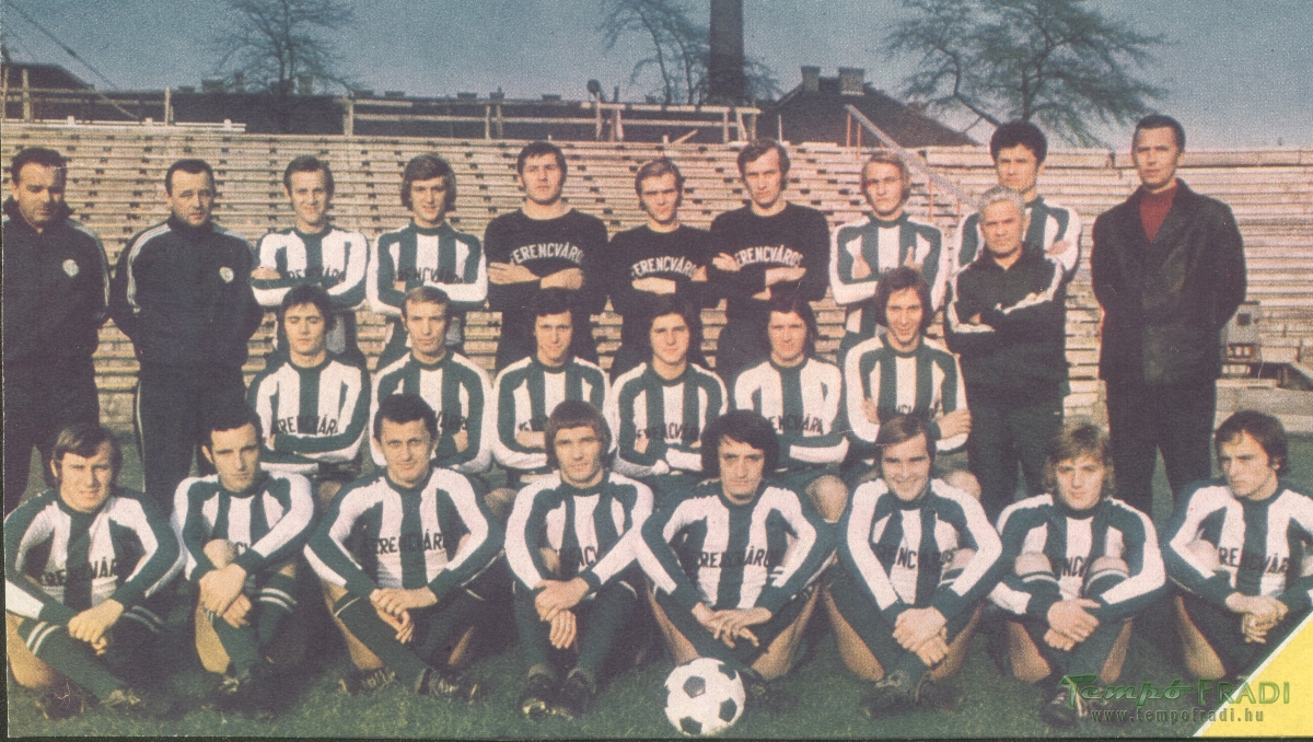 Dalnoki edző, Horváth Ö. pályaedző, Martos, Vépi, Géczi, Pálinkás, Domján L., Megyesi, Páncsics, Som elnökhelyettes, Viczkó, Juhász, Eipel, Forintos, Bálint, Nyilasi T., Dóka gyúró, Szőke I., Branikovits, Albert, Máté, Kű, Mucha, Ebedli Z., Magyar I.