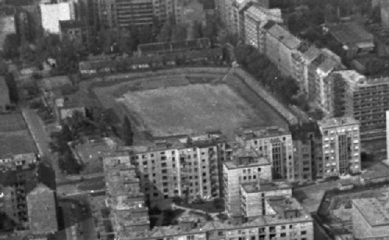 Szeptember eleje ellenére emlékezetem szerint kellemetlen, hűvös, esőre hajló idő volt. Éppen a kezdésre érkeztem ki, és alig tudtam beférni a nézők közé. A salakos kis pályát már a tesiórákról ismertem. Egyszerű vaskorlát vette körül – úgy, mint annak idején a hátsó (»Gyáli úti«) edzőpályát. Ettől olyan két méterre volt a kerí­tés. Ide kellett beférniük a szurkolóknak. (A tervező nem számolt Fradi-meccsel a jelek szerint.) Az öltöző a központi épületben volt, tehát a játékosoknak a meccsre kijövet és meccsről bemenet át kellett kelniük az utcán a túloldalra. (Egy mai biztonsági ember gutaütést kapna ettől, ám akkoriban a sportpályai erőszakot nem a szurkolók jelentették.) Én már csak közvetlenül az egyetlen kijárat mellett tudtam besoványkodni magam egy szűk helyre.