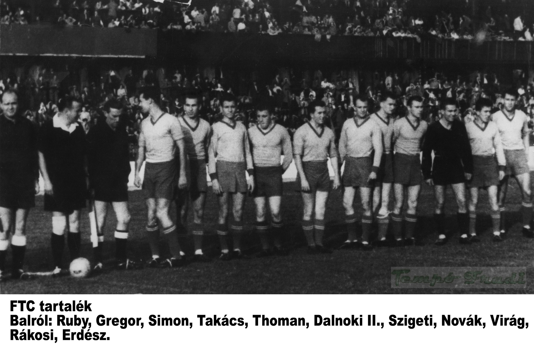 Balról: Hruby, Gregor, Simon, Takács, Thomann, Dalnoki II., Szigeti, Novák, Virág, Rákosi, Erdész.