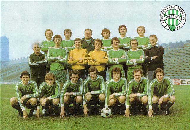 Harmadik sor (balról): Martos, Vépi, Dalnoki Jenő edző, Csaja, Rab, Megyesi. Második sor: Takács József gyúró, Giron, Kollár, Hajdú J., Bálint, Mucha, Albert Flórián technikai vezető. Első sor: Pusztai, Ebedli Z., Szabó Ferenc II., Nyilasi, Vad, Onhausz, Magyar