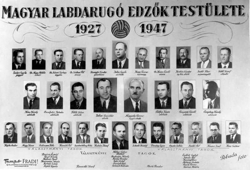 edzők, dr. Sárosi György, Toldi Géza, Sebes Gusztáv, Hadrévi József, Dimény Lajos, Opata Zoltán, Szabó Pál, Kiss Gábor,