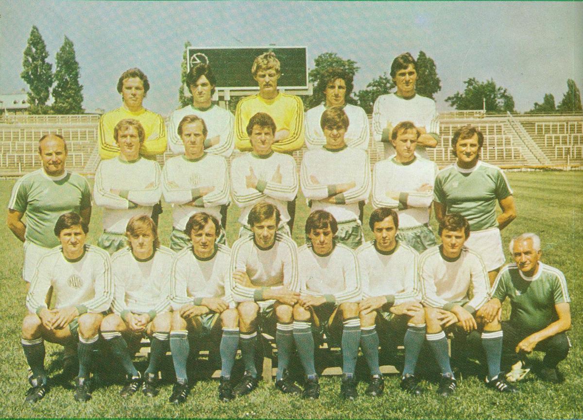Hátsó sor: Hajdú J., Tepszics, Zsiborás, Esterházy, Mészöly P. Középen: Friedmanszky Zoltán edző, Vépi, Martos, Bálint, Rubold, Magyar, Rózsa Lajos pályaedző. Elől: Pusztai, Ebedli, Szokolai, Nyilasi, Csider, Takács László, Pogány, Takács József gyúró