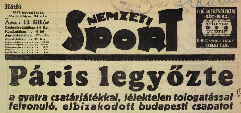 1936.XI.15. Párizs – Budapest 2:1 Közzétéve: 2009. február 5. csütörtök | Szerző: K@rcsi Egy kattintás ide a folytatáshoz.... →