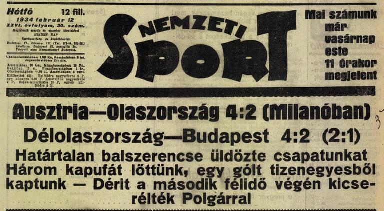 1934.II.11. Dél-Olaszország – Budapest 4:2
