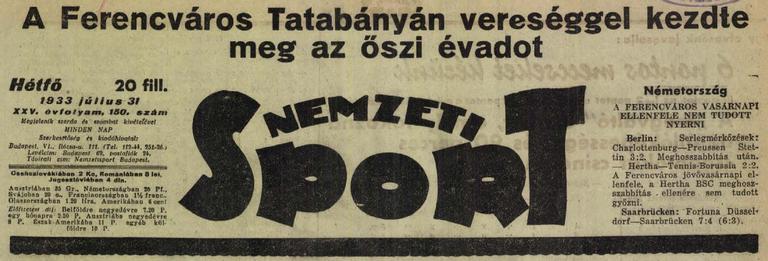 1933.VIII.6. Hertha – Ferencváros 5:2 Közzétéve: 2009. február 2. hétfő | Szerző: K@rcsi A Ferencváros súlyos veresége Berlinben Egy kattintás ide a folytatáshoz.... →