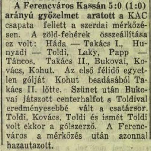 1932.IX.28. 1. FC Kosice – Ferencváros 0:5
