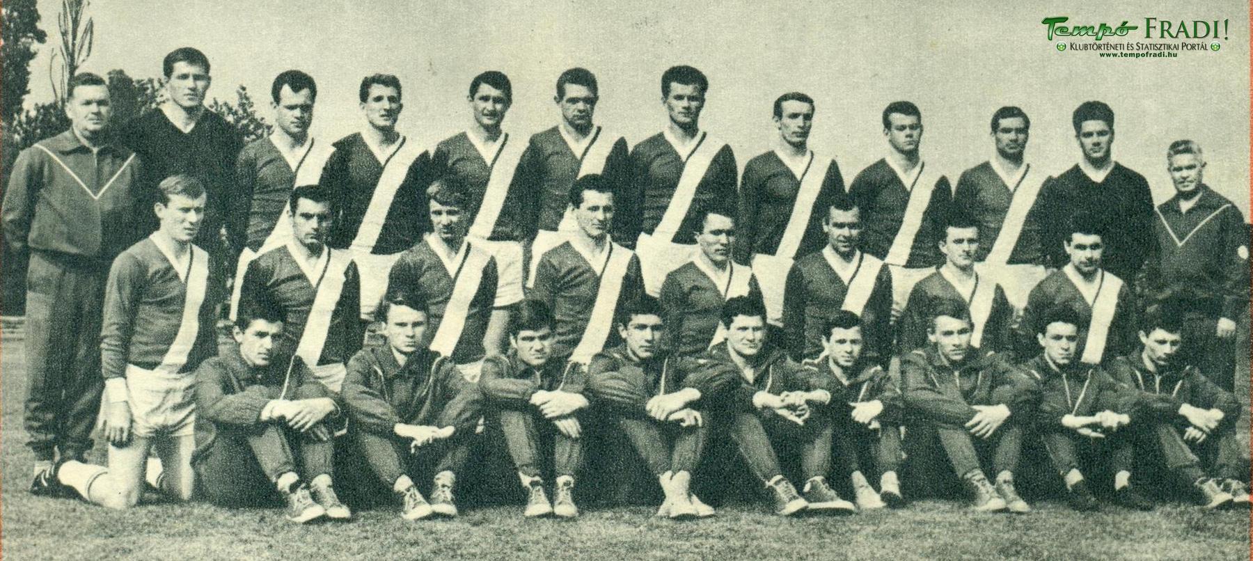 Állnak (balról): dr. Lakat Károly vezetőedző, Géczi, Novák, Havasi, Perecsi, Mátrai, Páncsics, Juhász I., Szűcs L., Horváth L., Takács B., Dóka gyúró. Középen: Szőke I., Karába, Varga Z., Albert, Rákosi, Rátkai L., Katona, Fenyvesi dr. Elől: Füsi, Tátrai A., Vajda S., Horváth Á., Bálint, Turai, Megyesi, Fenyvesi IV., Mezei