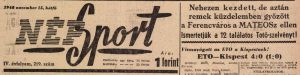 1948.XI.14. Ferencváros – MATEOSZ 2:1 Közzétéve: 2009. február 17. kedd | Szerző: K@rcsi Szép küzdelemben húsz perc alatt fordította meg a Ferencváros a mérkőzés sorsát Egy kattintás ide a folytatáshoz.... →