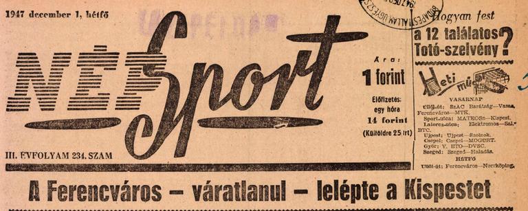 1947.XI.30. Kispest – Ferencváros 1:4 Közzétéve: 2009. február 16. hétfő | Szerző: K@rcsi Egy kattintás ide a folytatáshoz.... →