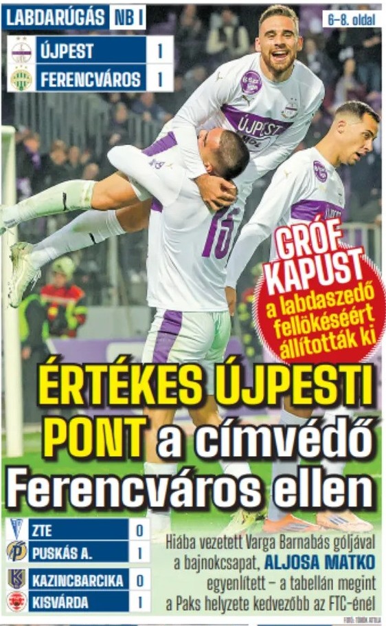 Gróf ellökött egy labdaszedőt, Varga állt be a kapuba – pontot mentett az Újpest a Fradi ellen