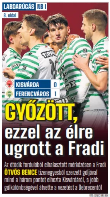A labdarúgó NB I 12. fordulójában a Ferencváros hazai pályán 4–1-re legyőzte az MTK-t. Ferencvárosi rohamokkal indult a találkozó, a zöld-fehérek a 19. percben szerezték meg a vezetést. A második gólra a 70. percig kellett várni, majd rövid idő alatt még kétszer betaláltak a hazaiak. Az MTK erejéből csak a szépítésre futotta, a Ferencváros magabiztosan nyerte meg a 229. bajnoki örökrangadót.