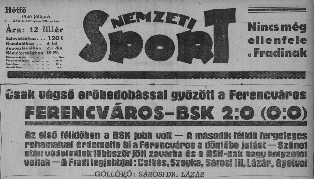 1940.IX.1. Ferencváros – Elektromos 2:0
