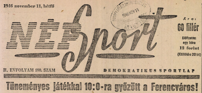 1946.XI.10. Ferencváros – SZAC Barátság 10:0 Közzétéve: 2009. február 15. vasárnap | Szerző: K@rcsi Tüneményesen játszott a Ferencváros a nehéz, sáros talajon Egy kattintás ide a folytatáshoz.... →