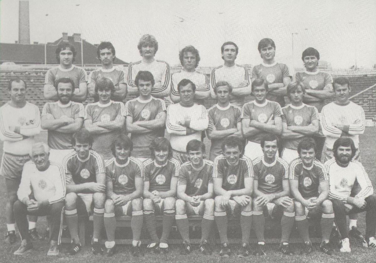 Harmadik sor (balról): Judik, Rab, Zsiborás, Hajdú J., Kakas, Mészöly P., Pusztai. Középen: Monostori Tivadar edző, Ádám, Major, Horváth R., Novák Dezső vezetőedző, Jancsika, Mucha, Murai, Szűcs Lajos edző. Elől: Takács József gyúró, Nyilasi, Szokolai, Ebedli Z., Koch, Szabó Ferenc II., Takács L., Pogány, Bodnár József gyúró