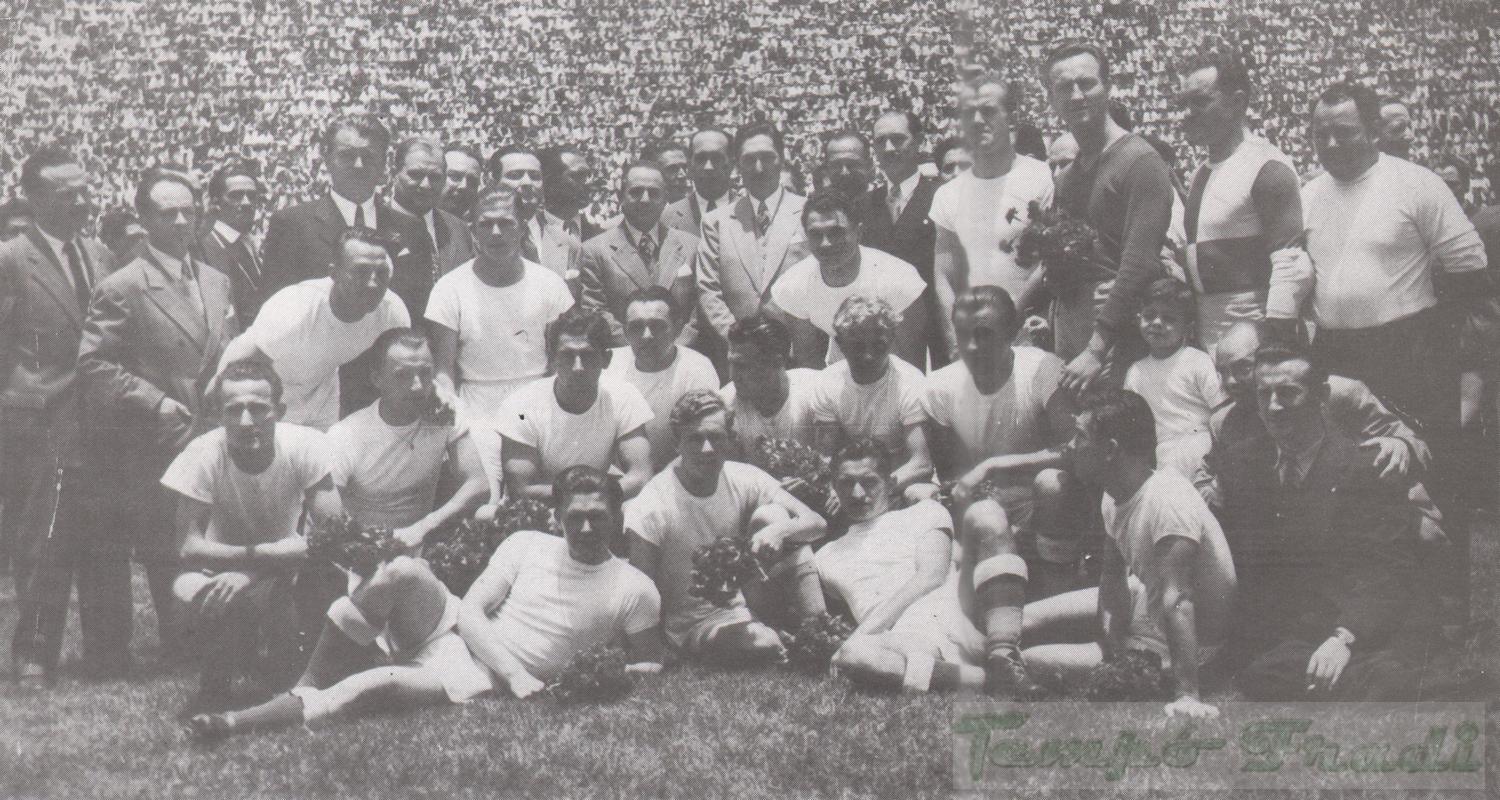 balról: Kéri, Puskás, Mike, Csanádi, Henni, Csikós, Mészáros J., Onódy I., Rudas, Hernádi, Sárosi dr., Gyulai, Kispéter, Szusza, Lakat, Szabó Ferenc I., Szőke J.