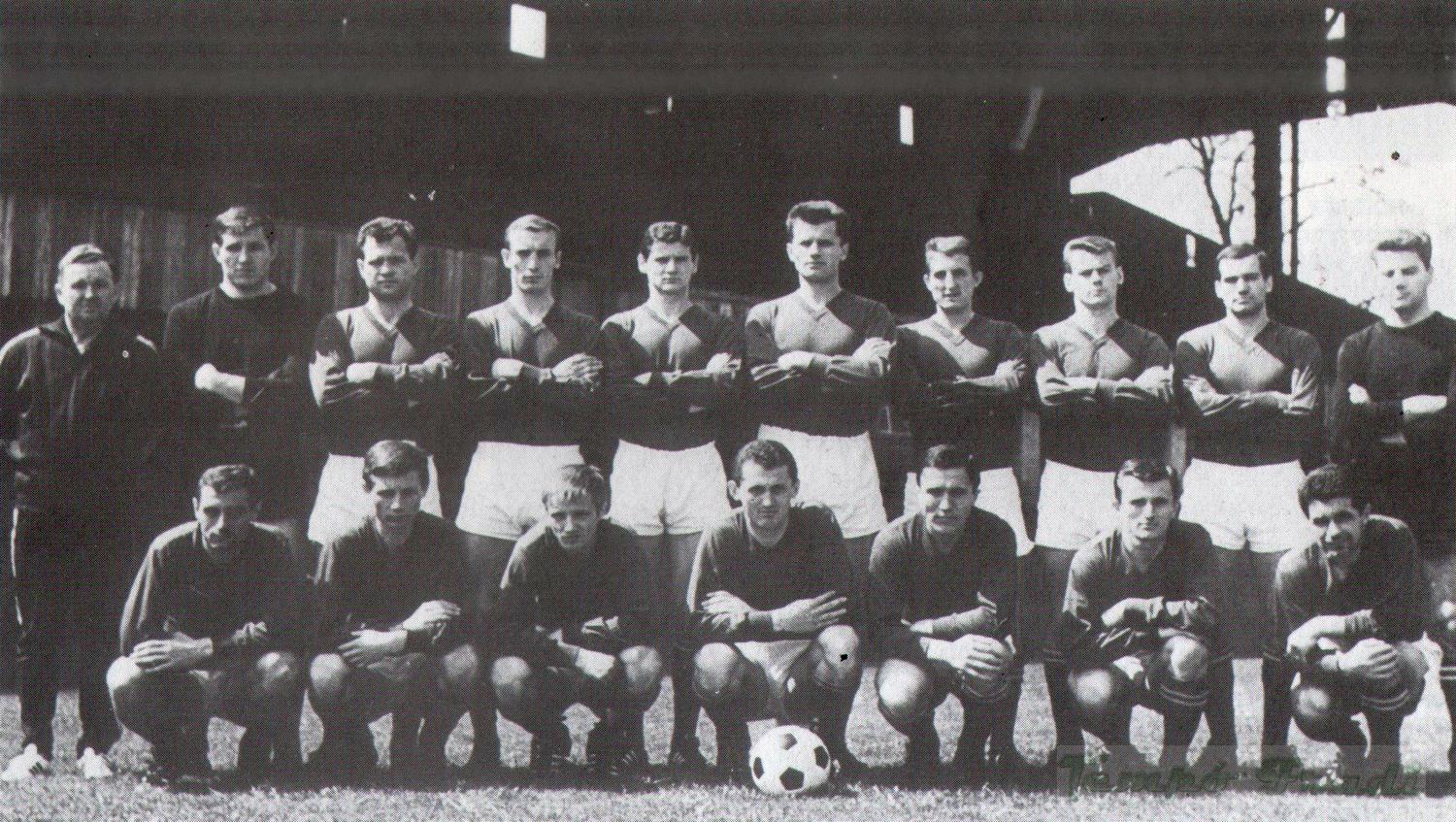 Állnak (balról): dr. Lakat Károly edző, Géczi, Novák, Juhász, Bálint, Páncsics, Havasi, Szűcs Lajos, Horváth L., Takács B. Elől: Karába, Mezei, Varga, Albert, Rákosi, Katona, Fenyvesi