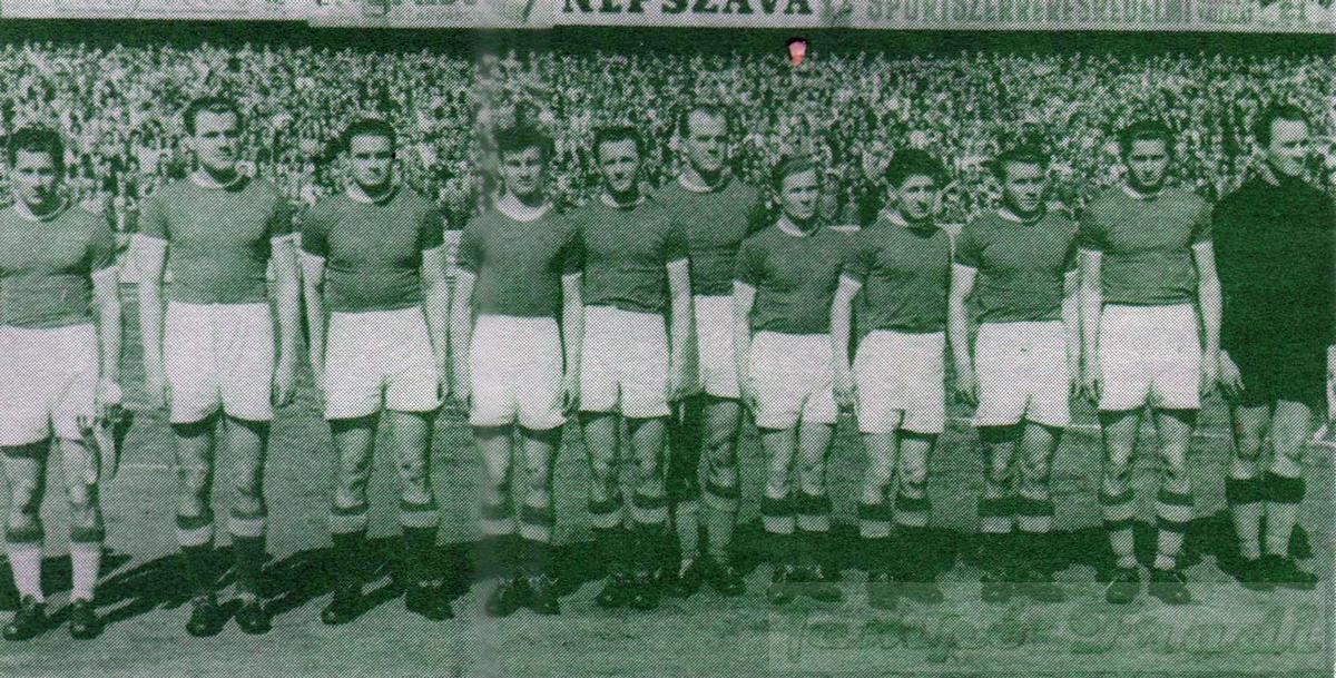 balról: Rudas, Kispéter, Deák I., Kocsis S., Horváth Ö., Csanádi, Lakat, Czibor, Budai, Szabó I. Ferenc, Henni