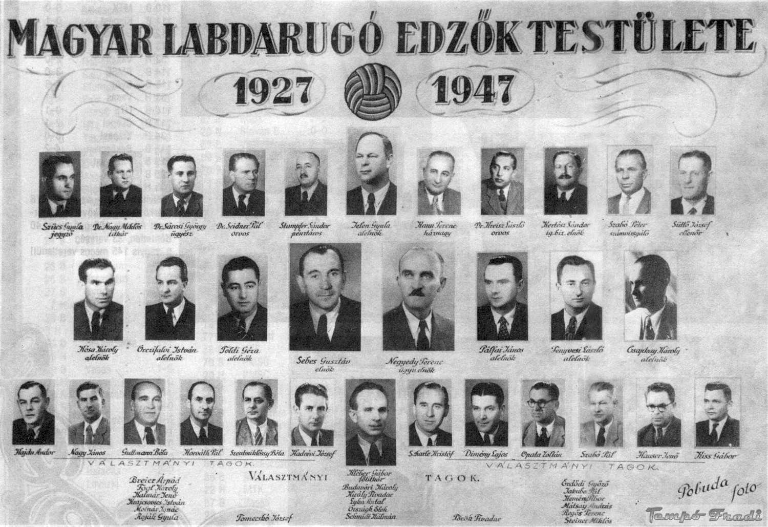 edzők, dr. Sárosi György, Toldi Géza, Sebes Gusztáv, Hadrévi József, Dimény Lajos, Opata Zoltán, Szabó Pál, Kiss Gábor,