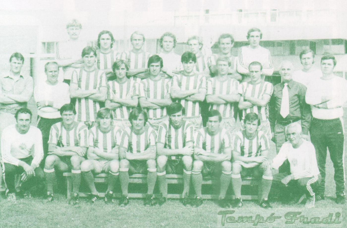 Harmadik sor (balról): Zsiborás, Judik, Megyesi, Hajdú J., Jancsika, Ádám, Kakas. Középen: Havasi Mihály technikai vezető, Friedmanszky Zoltán vezetőedző, Mészöly P., Murai, Nagy M., Tepszics, Vépi, Magyar, Mészáros József szakosztályelnök, Géczi István kapusedző, Bácsalmási Péter pályaedző. Elől: Jakabházy László erőnléti edző, Pusztai, Ebedli, Szokolai, Nyilasi, Takács L., Pogány, Takács József gyúró.