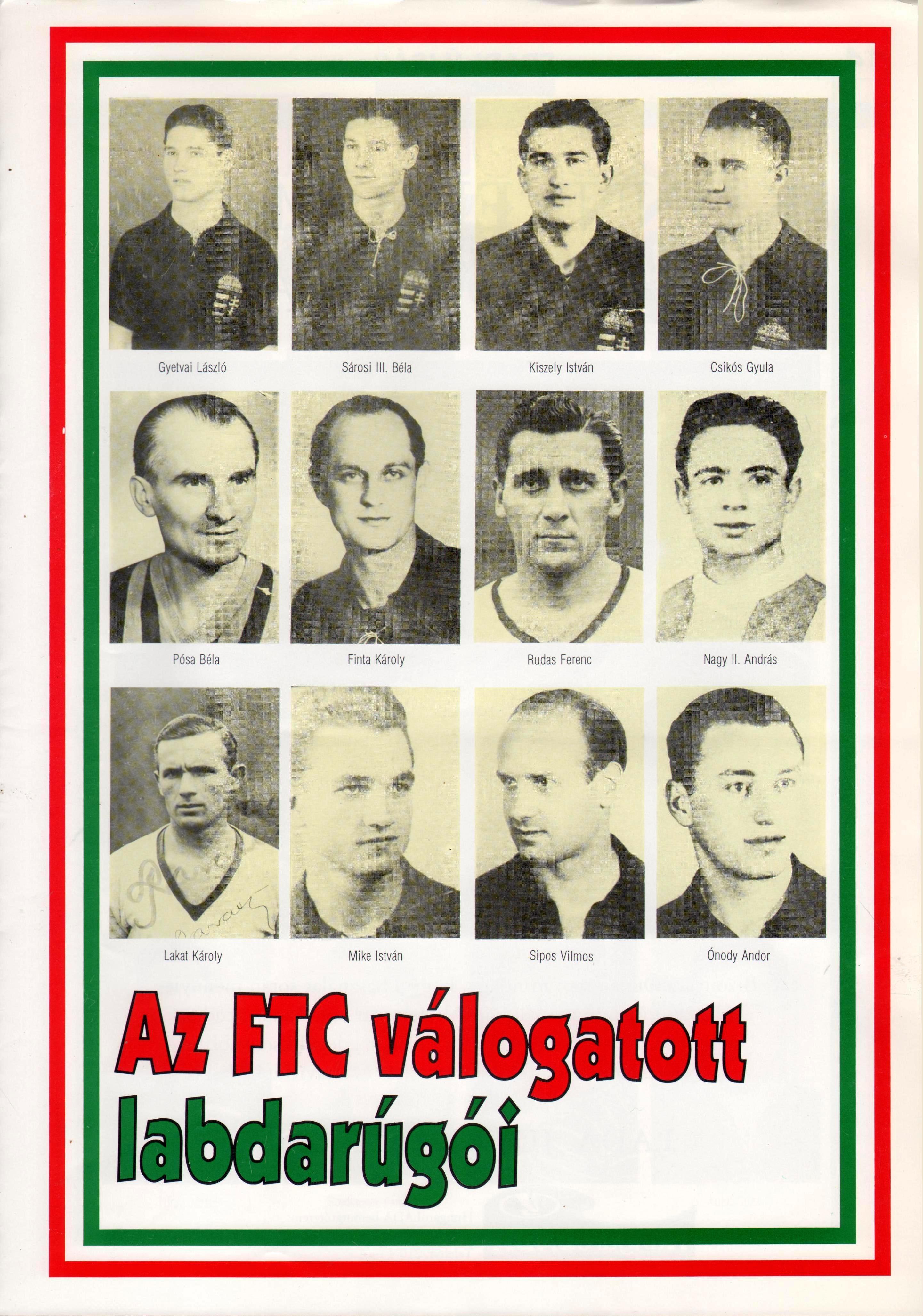 válogatott, Gyetvai, Sárosi III., Kiszely, Csikós, Pósa, Finta, Rudas, Nagy II., Lakat, Mike, Sipos, Ónody I.