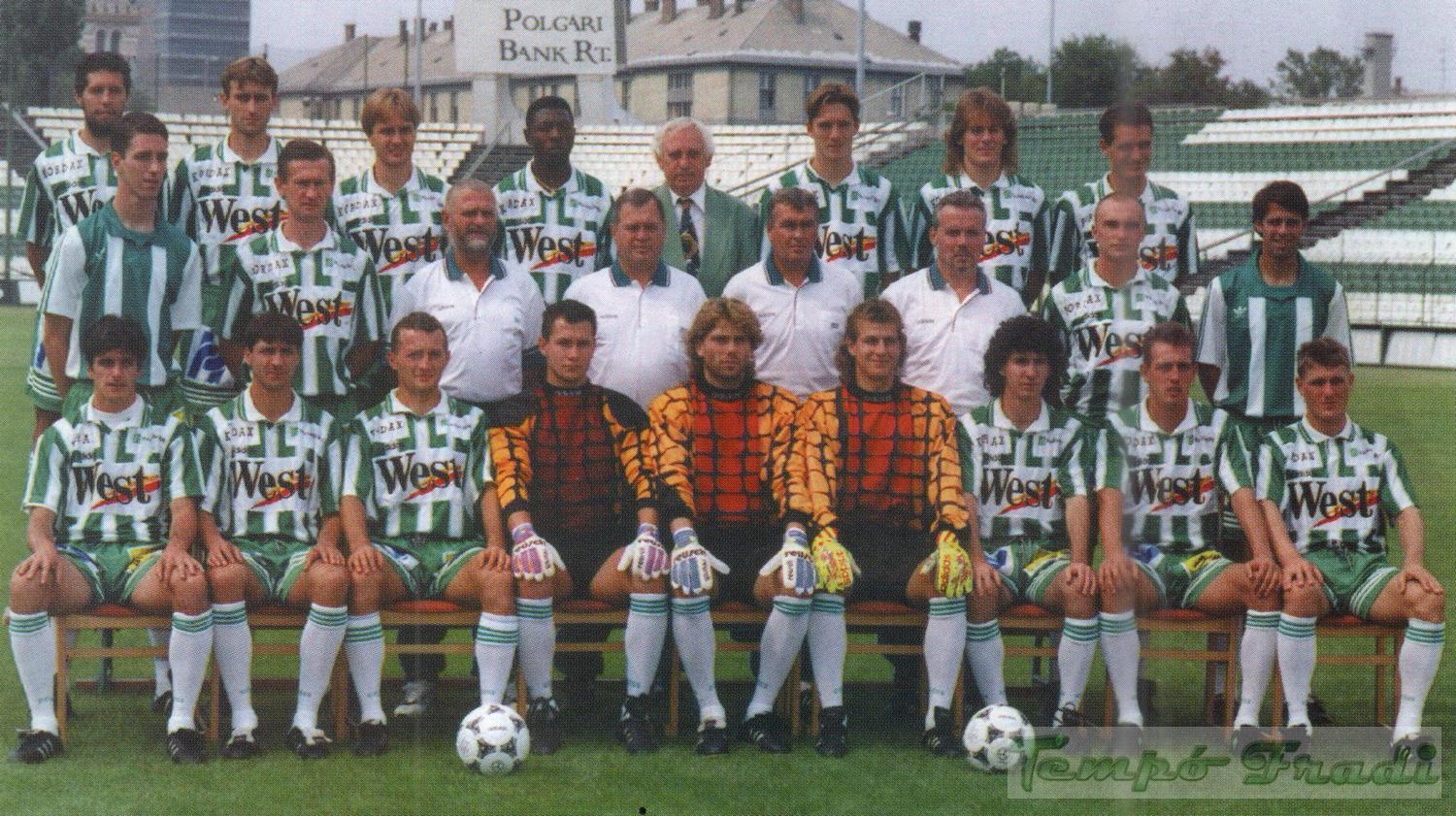 Harmadik sor, balról: Nyilas, Milovanovic, Páling, Fatusi, Golecz technikai vezető, Vincze O., Kecskés, Telek. Középen: Hrutka, Kuznyecov, Bodnár masszőr, Novák vezetőedző, Mucha edző, Hajdú J. kapusedző, Simon T., Zavadszky. Elől: Kuntic, Kopunovic, Nagy Zs., Tímár, Hajdú A., Szeiler, Lisztes, ifj. Albert, Keller