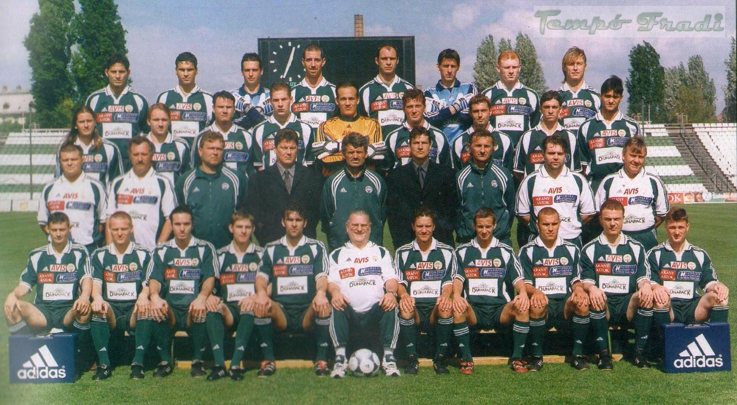 Felső sor (balról): Csiszár Á., Dragóner, Sólyom, Hrutka, Kriston, Németh G., Fülöp Z., Csoknay. Harmadik sor: Lakos, Vén, Lászka, Gyepes, Szűcs II. Lajos, Nagy N., Horváth P., Monken-Arruda, Balog Z. Második sor: Tömör-Tones Zsolt szertáros, dr. Kovács József, Józsa Miklós kapusedző, Haaz Ferenc technikai vezető, Csank János vezetőedző, Szeiler József cégvezető, Vass László edző, Lipcsei Gábor masszőr, Eisemann László masszőr. Elől: Cheregi, Tóth M., Hámori F., Gera, Lipcsei, Bodnár József masszőr, Szűcs M., Schultz, Földvári, Pinte, Keller