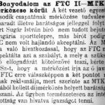 A MTK—FTC szövetségi-dij mérkőzésének ügye — mint előre látható volt — nagy kavarodást idézett elő. Mind a két fél követeli a pontokat, a testgyakorlók pedig ujabban a pontok iránti kérelmük meghagyása mellett bejelentették a szövetségnek, hogy tisztán az erőviszonyok tisztázása végett hajlandók második csapatukat a FTC II. ellen egy jótékonycélu barátságos mérkőzésre kiállítani.