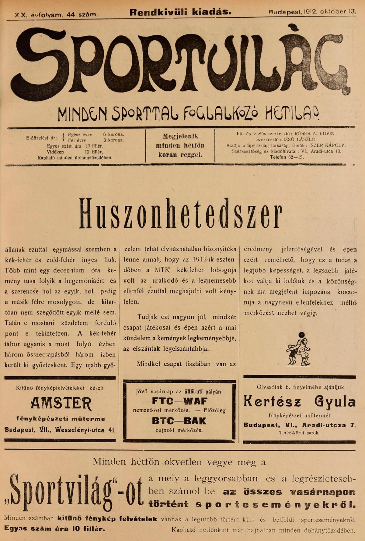 (Sporthírlap, 1912. október 14-21.)