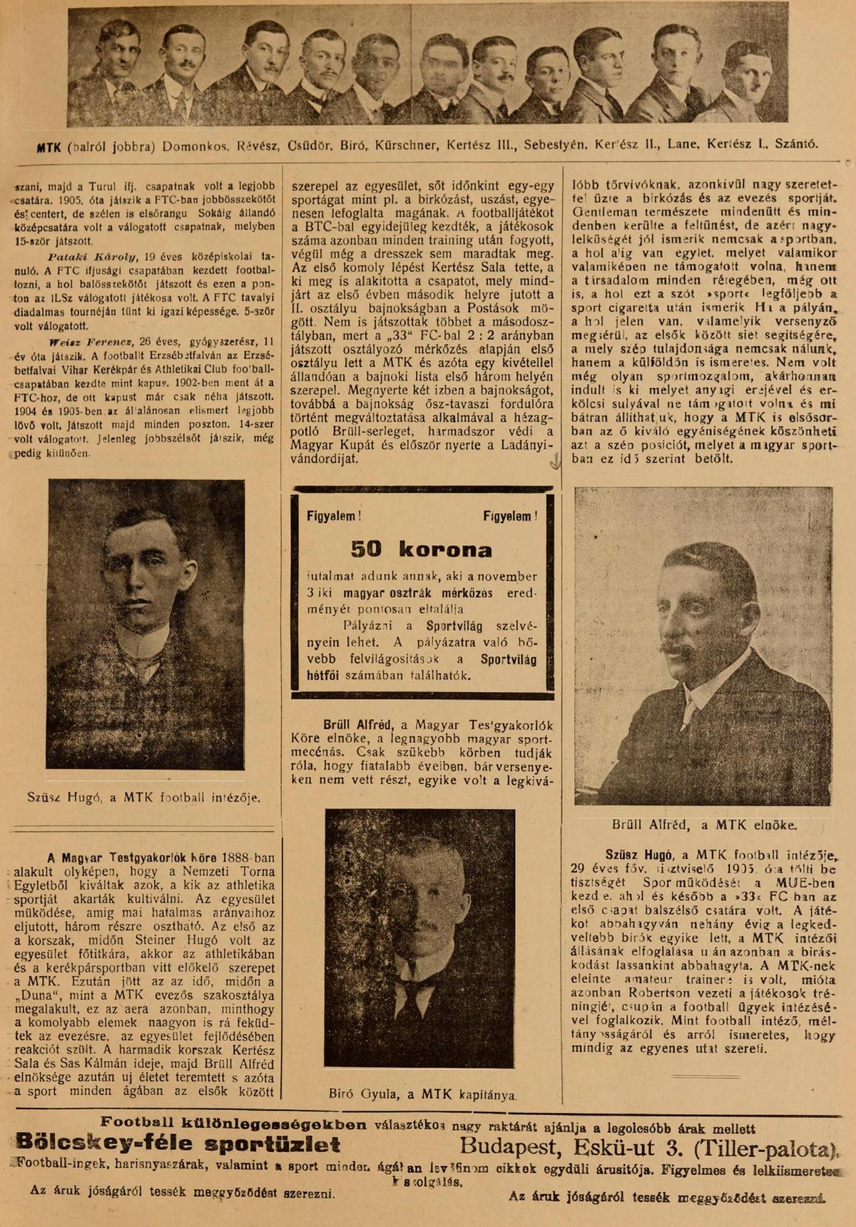(Sportvilág & Sporthírlap, 1912. október 28.)