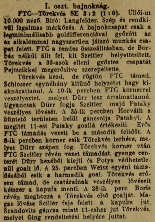 A FTK—Törekvés mérkőzésen a két fél az alábbi összeállításban fog szerepelni: FTK: Schiller, Rumbold, Szandovics, Weinber, Bródi, Blum, Weisz, Tóth, Pataky, Schlosser, Borbás. Törekvés: Dürr, Horváth, Szentey, Pejtsik, Ging, Siegel, Bőti, Nyilas, Kocsis, Ürögdy és Mezner.
