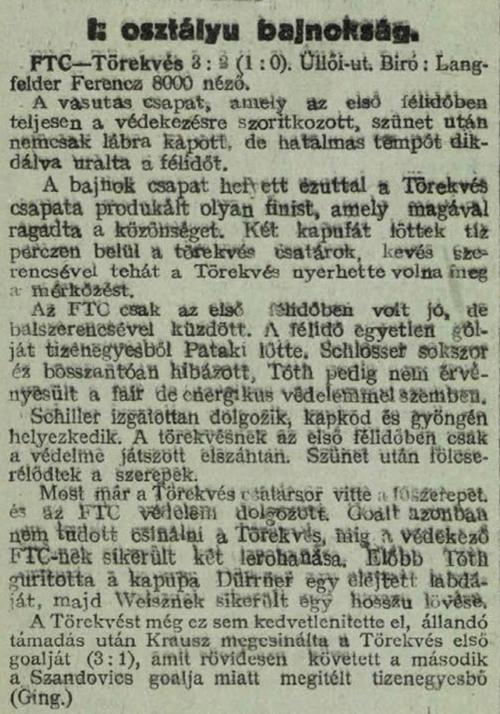 ***Budapesti Hírlap, 1913. szeptember 9. A BAK csapatában az FTC ellen: „Jobbszélre Krausz, a Törekvés volt játékosa került”