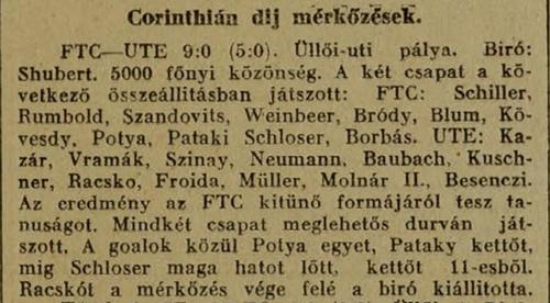 1913.VIII.24. Corinthian díj, FTC – UTE 9:0