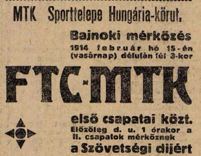 1914. február 15., 14:30, Hungária út, MTK – FTC 4:1 (2:1)