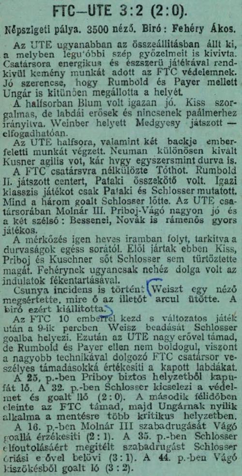 1914. június 14., 17:00, Népsziget, UTE – FTC 2:3 (0:2)