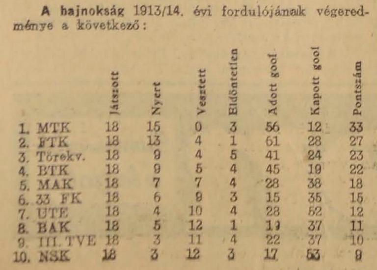 Az UTE jelenlegi csapata: Váradi,— Vranák, Vermes,— Kusner, Neumann, Fandl, — Novák, Vágó, Priboj, Molnár III., Bessenei. (SH19140622)