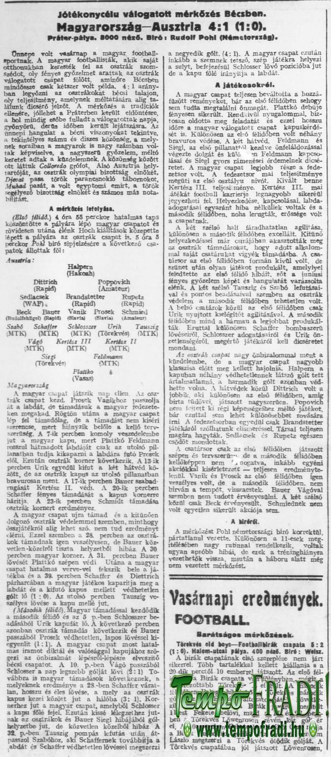 Bécs, WAC-pálya, 12 000 néző, vezette: Pohl (német)