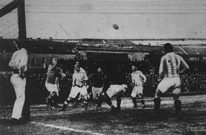Kezdetben mindkét csapat elfogultan, óvatosan játszik. Különösen az MTK, szél ellen küzdve, látszik elfogultnak. Az FTC. támad, de játéka eleinte veszélytelen és csak a Payer kapura irányított szabadrúgása fenyegeti az MTK-t. De frontba jön az MTK is és Schaffer lő. A labda a kapu fölött visít tovább. Hosszabb középjáték után kornerhez jutnak a kék-fehérek, mely Schaffer túl magas fejesével nyer befejezést.