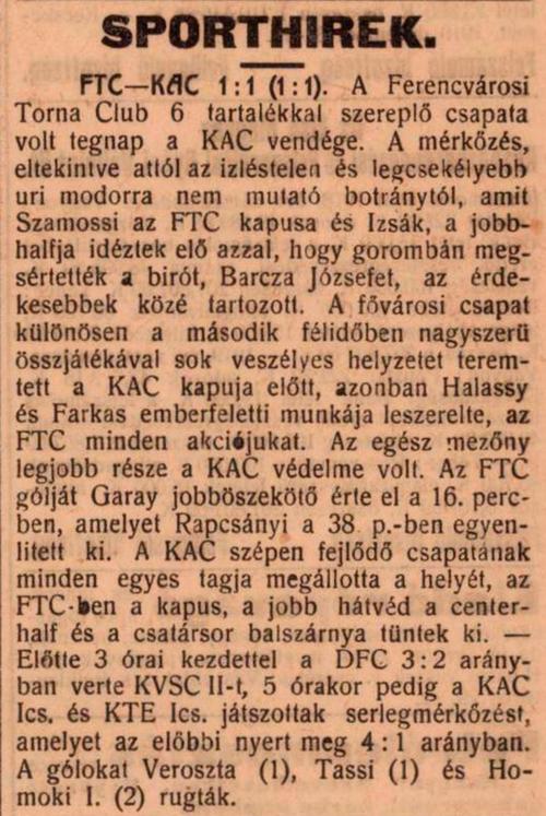 Kategória: 1919/20 | Címke: 1919/20, edzőmérkőzés, Kecskeméti AC