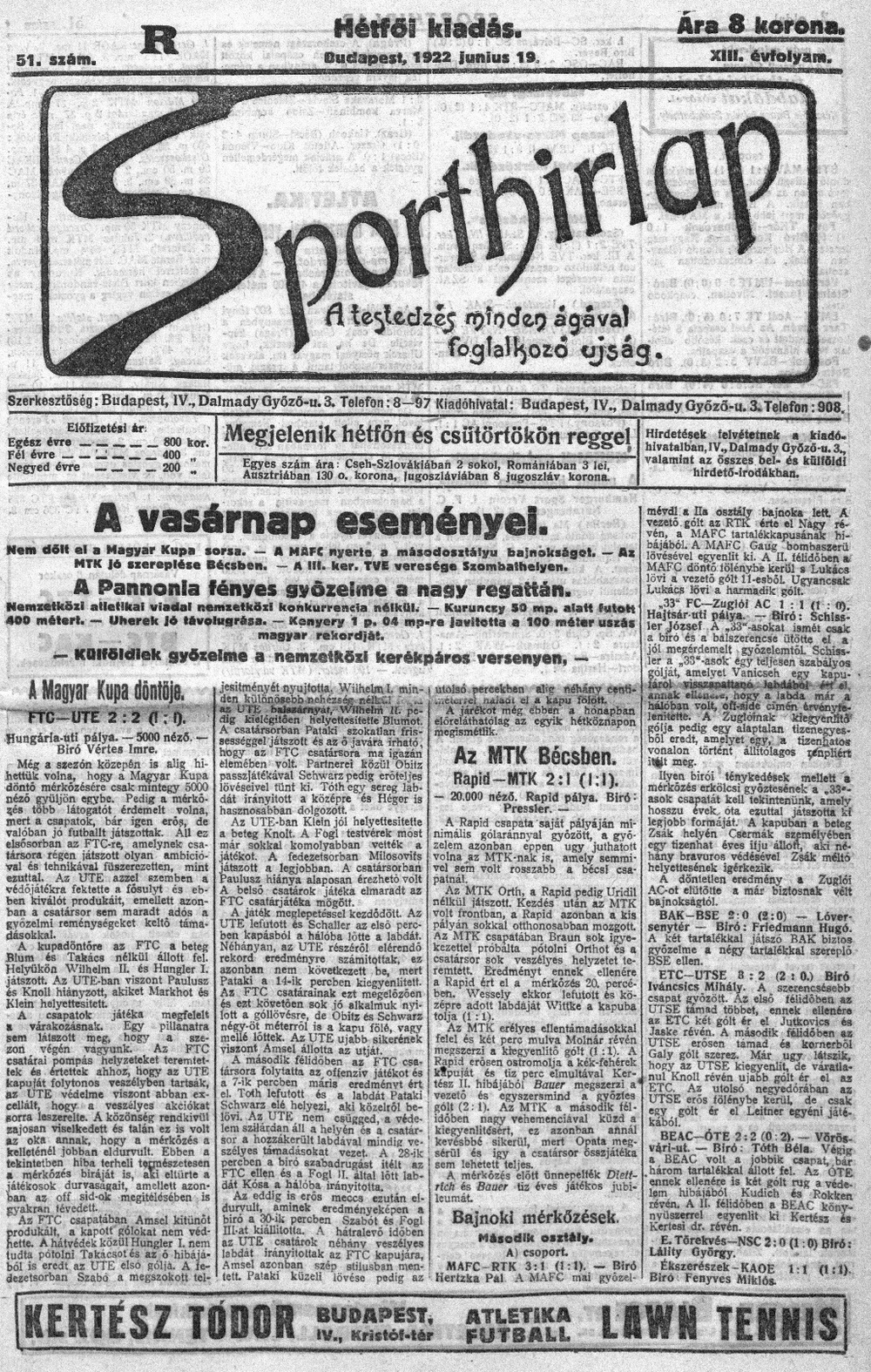 Szenzációsak ezek a régi újságok, ugyanakkor végtelenül szomorú, hogy míg 1922-ben a másodosztályú ligában még ennyi budapesti csapat volt, mára pedig maximum ennyi bevásárló-központ van, mert a pályákat mind lebontották/eltüntették…