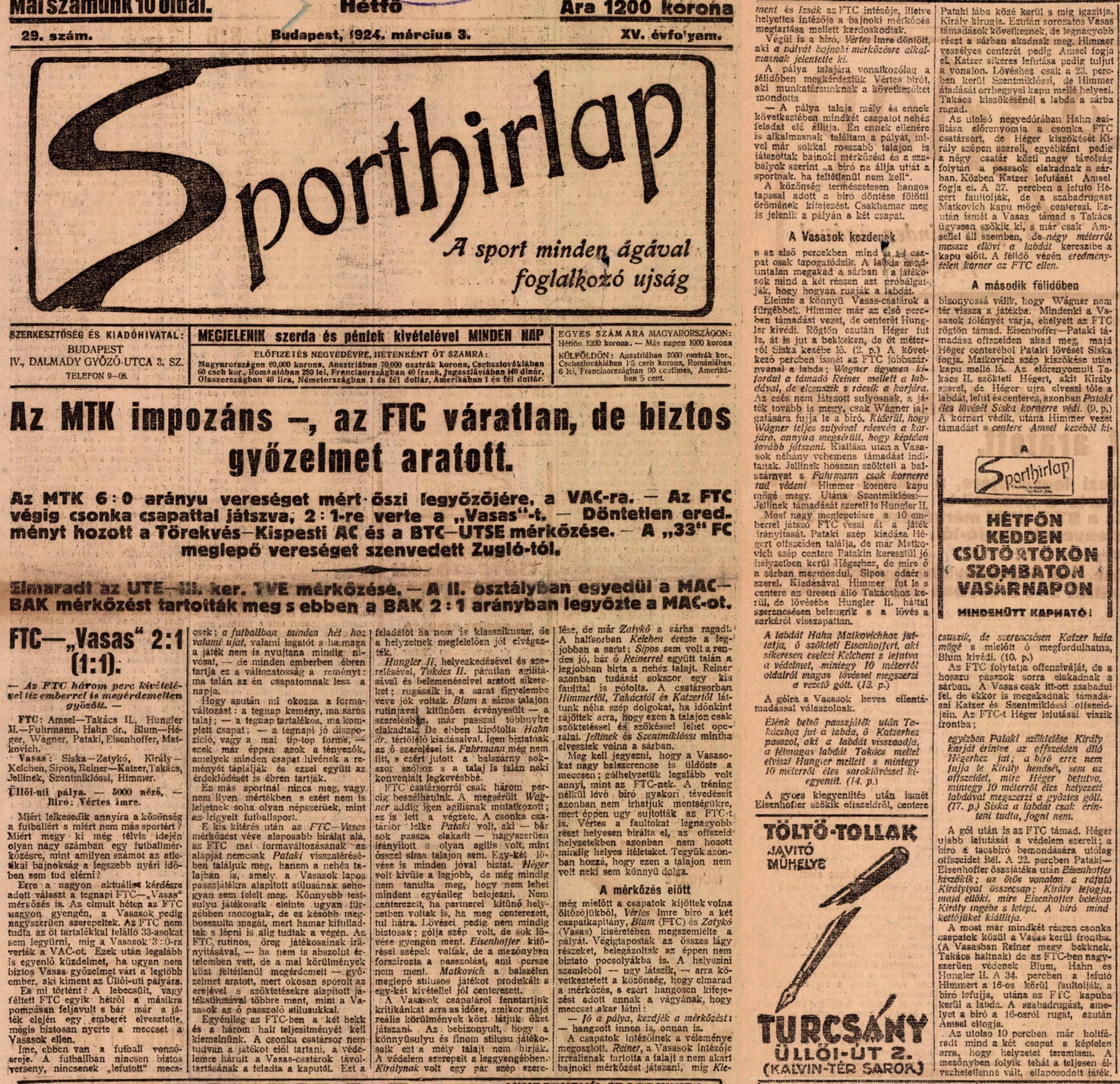 1924.III.2. FTC – Vasas 2:1