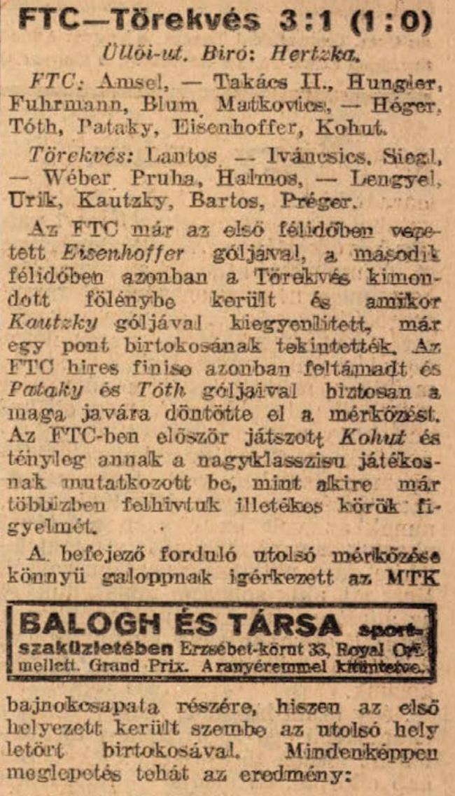 Kategória: 1923/24 | Címke: 1923/24, Eisenhoffer József, Hungler II. János, Kohut Vilmos, NB1, Pataky Mihály, Törekvés, Tóth-Potya István